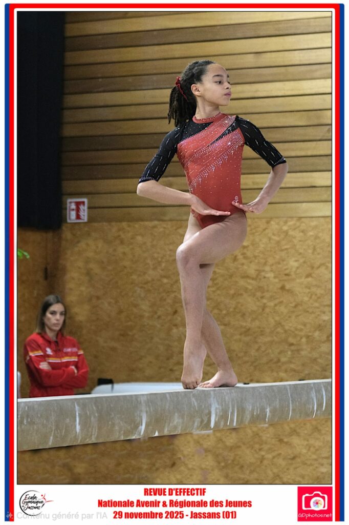 Engagée à la revue d’effectif des jeunes le 29 novembre 2025 à Jassans, la jeune gymnaste a démontré toute l’étendue de ses qualités en décrochant sa qualification pour les Championnats de France Élite, en se classant 6ème de sa catégorie.