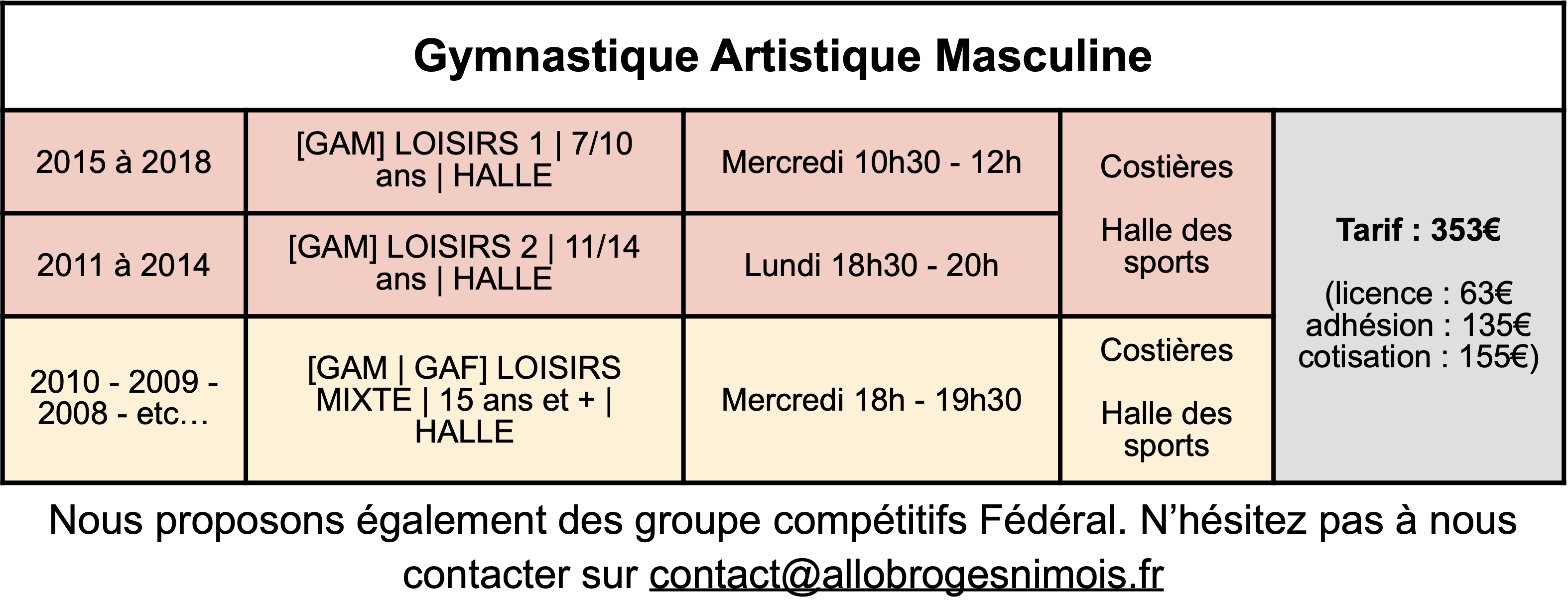 Club de gymnastique artistique (GAF / GAM / Baby Gym)